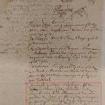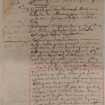 « (…) que dans, ledit temps, il vit le nommé, Colin serviteur desdits sieurs Le Ber et Le Moyne, qui vint prendre un castor qui estoit a quelques sauvages qui estoient pour lors chez luy qui respond, qui estoit plein de pelleteries et l en mena chez lesdits sieurs Le Ber et Le Moyne, ce qui obligea ledit Massias et pria ledit qui respond de venir avec luy comme interprette de la langue iroquoise, afin de ___ une peau desdits sauvages qui luy estoit deue, et estant en la maison et au desbarquement de la maison desdits sieurs Le Ber et Le Moyne, ils virent lesdits sauvages et ledit Braillaud qui portoieut les pelleterie dudit canot, en laditte maison qui les portoient item a la reserve d’une peau d’orignal, a laquelle ledit Massia s’opposa en s en saisit et ledit Braillaud la voulant prendre et la tiraillant un et l autre sur quoy ledit Braillaud poussa par deux fois ledit Massias, et luy le voyant pousse de la sorte repoussa ledit Braillaud qui tomba, sur des roches d’ou il se blessa, et le battirent un et l autre de coups de poings, sur quoy ledit qui respond les separe autant qu’il peut sans frappe n’y sur l’un n’y sur l’autre (…) ».