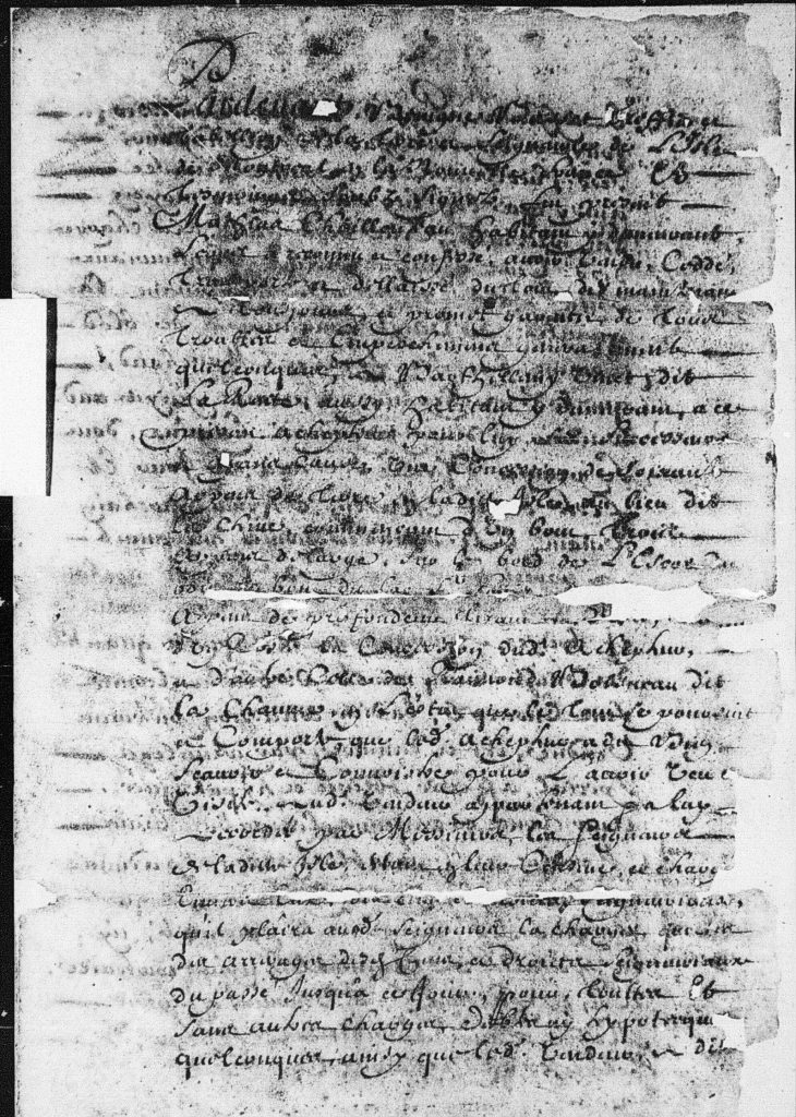 Acte de vente d’une terre par Mathias Chatouteau à Barthélémy Vinet dit Larente[11]