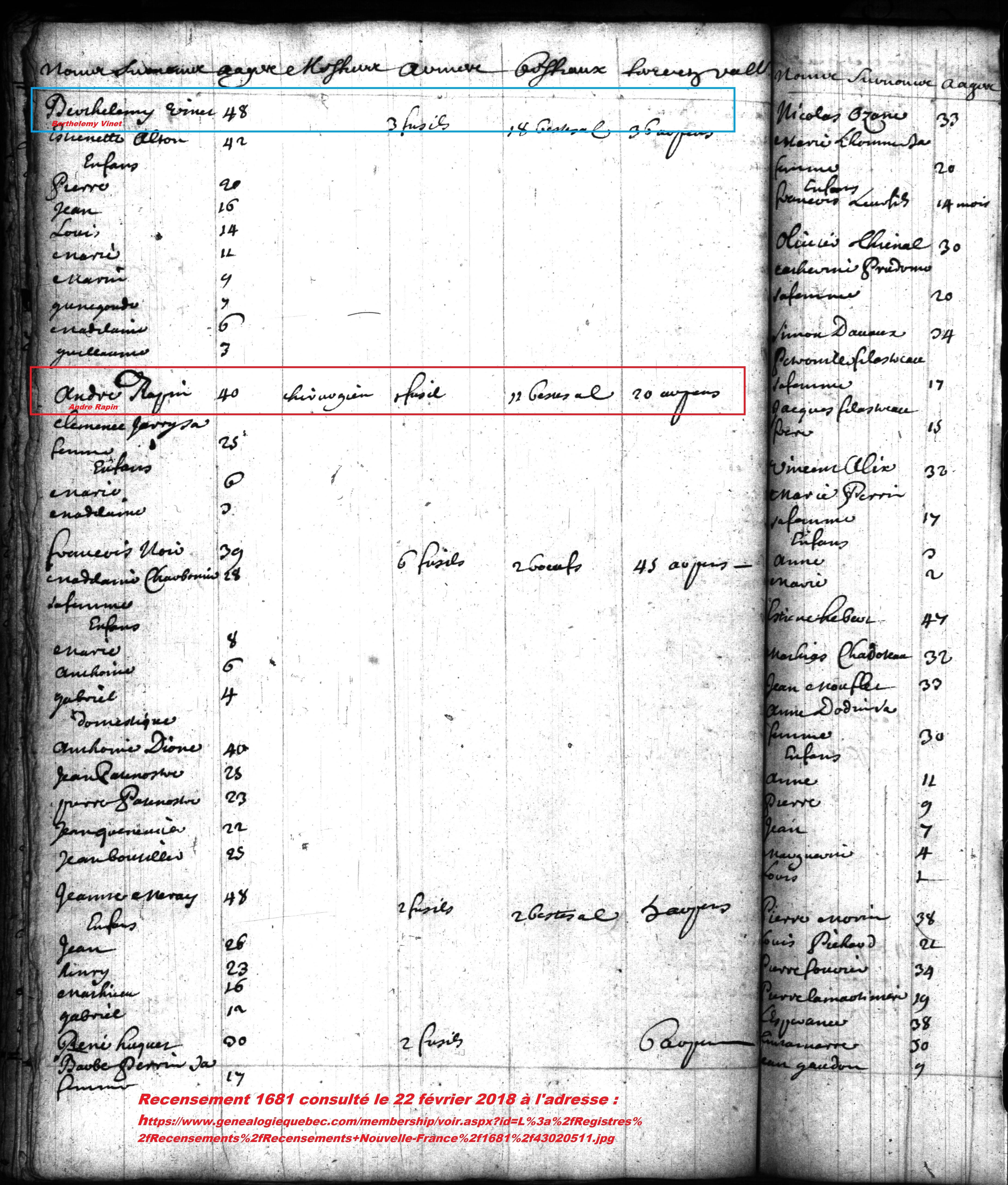 Selon cet ordre du recensement de 1681, « l’habitation » Barthélémy Vinet dit Larente est entre celle de Guillaume Loret[20] et celle André Rapin.