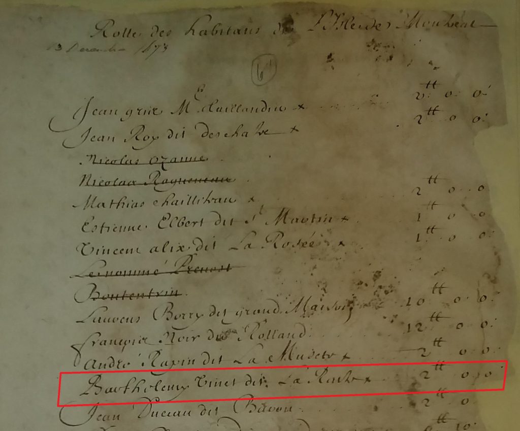 En fouillant les pièces détachées du Fonds du Bailliage de Montréal (TL2)[1] à la Bibliothèque des Archives nationales du Québec (BAnQ) à Montréal, je suis tombé sur une liste de colons en possession d’une terre dans l’île de Montréal en 1673. Cette liste s’intitule « Rolle des habitants de l’Isle de Montréal »[2]. J’avais par ailleurs pris note de ce document il y a quelques années en parcourant le DVD de Gilles Proulx, historien intitulé « Les dossiers du Bailliage de Montréal au XVIIe siècle » publié en avril 2008.