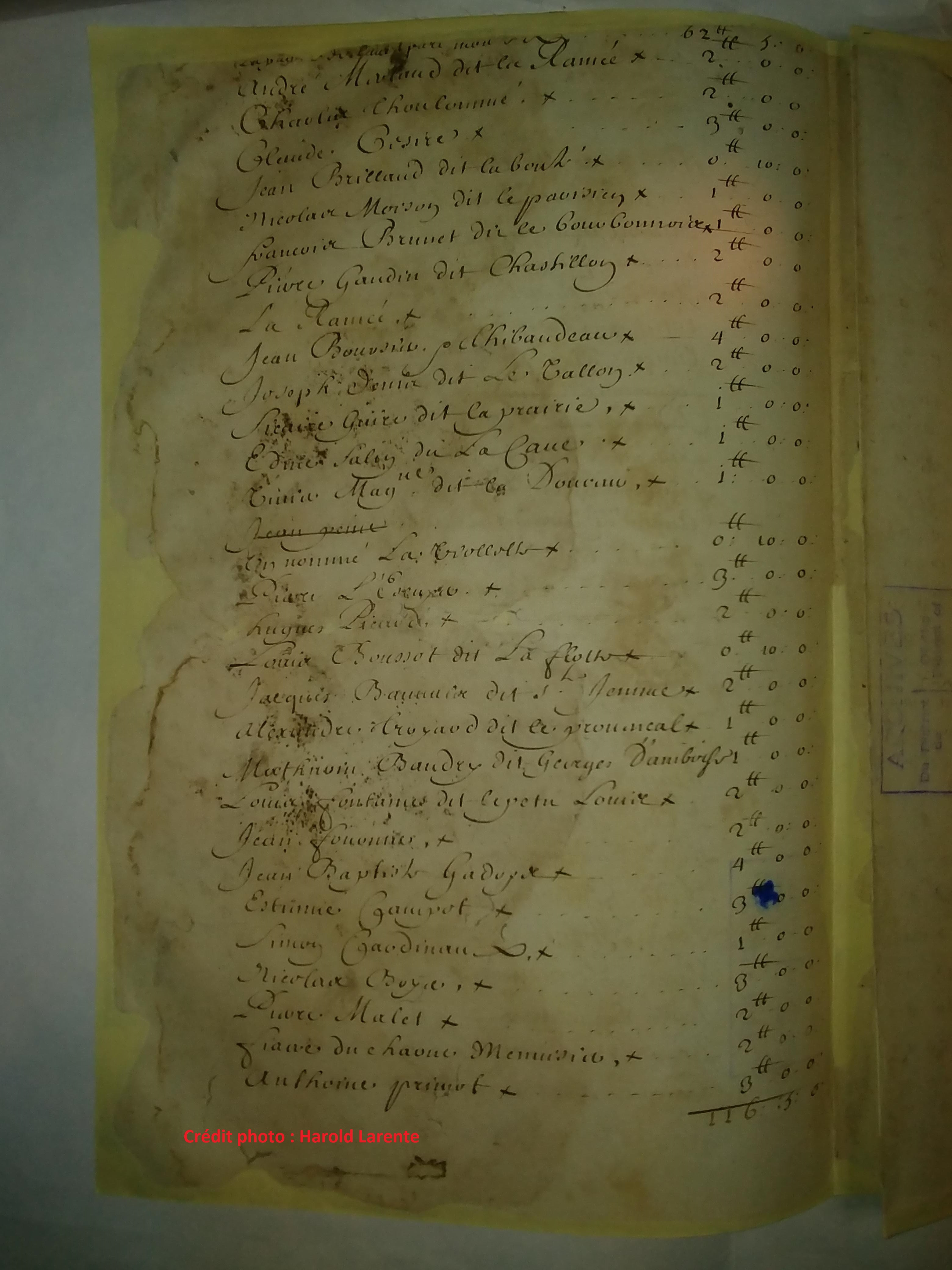 | Louis Fontaine dit le petit Louis | X | 2 # | 0 s. | 0 d. |