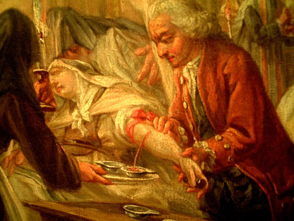 Le traitement des maladies vise donc à rétablir l’équilibre des humeurs dans le corps. On utilisera principalement quatre formes de thérapeutiques : la saignée, les lavements, la sudation et la diète.[10]
