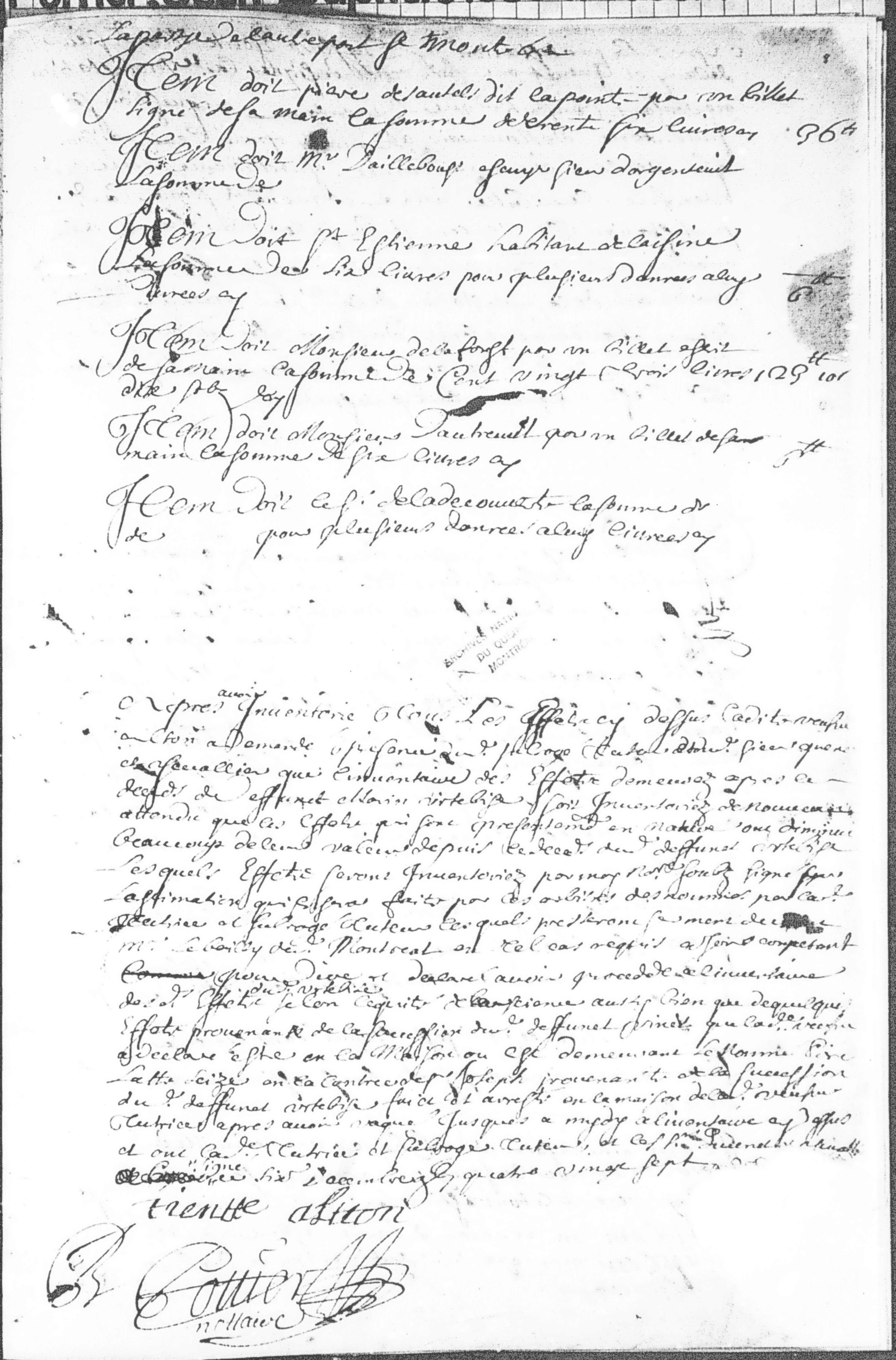 [17]↑ L’inventaire ne fait pas état du salaire de Claude Cécire qui a oeuvré la deuxième journée à l’inventaire.